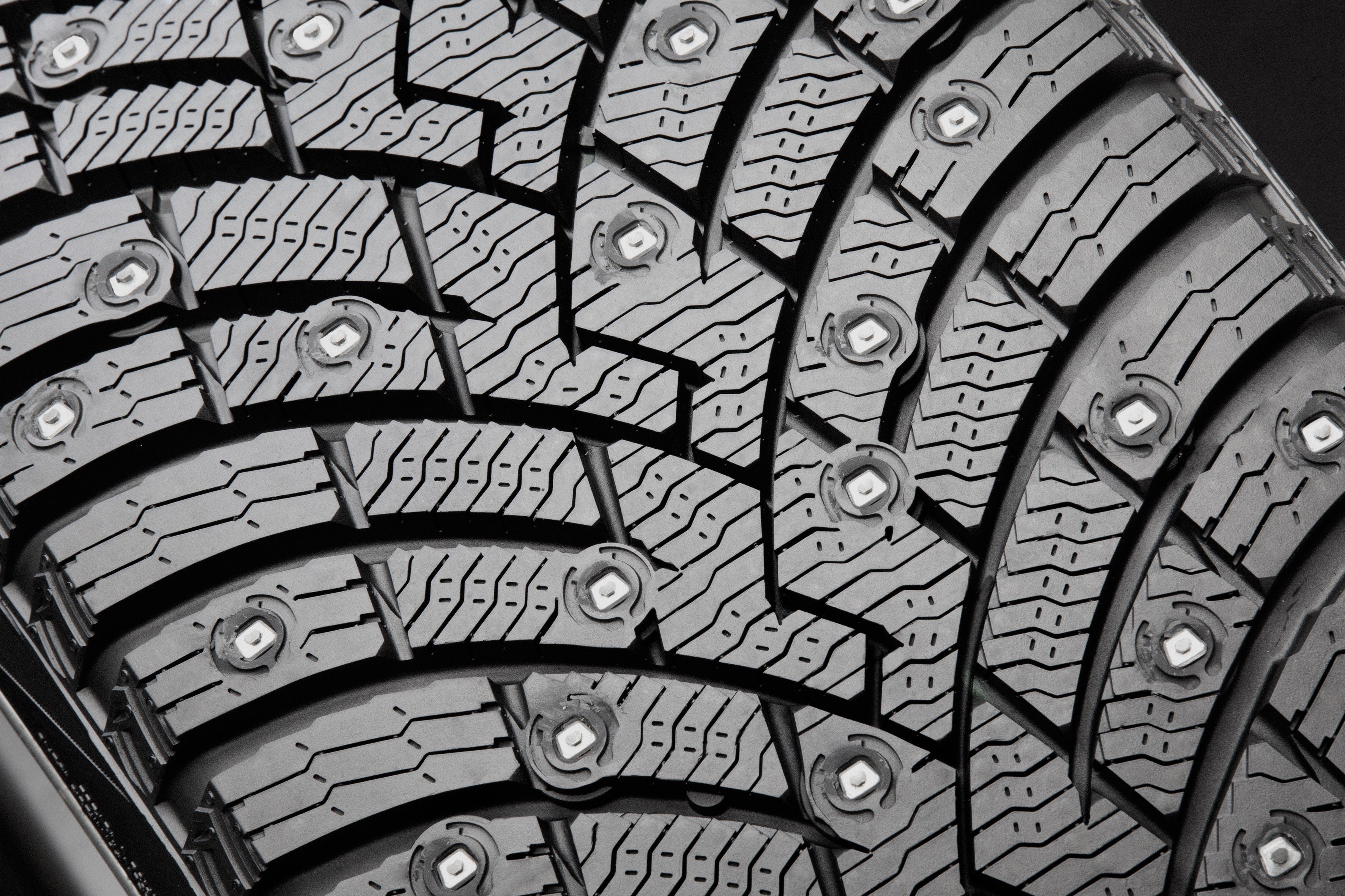 Ice Zero 2 даже интересно рассматривать. У нее интересный рисунок, в котором не сразу замечаешь симметрию. Шипы - их в шине, в зависимости от ее размера, от 190 до 202-х - кажется, разбросаны как попало. Где-то их больше, где-то почти нет, но логика обнаруживается при внимательном сопоставлении больших фрагментов. Оказывается, расположение шипов было смоделировано таким образом, чтобы работа каждого была максимально эффективна. Шипы в пятне контакта во время разгона или торможения не попадают на одну линию ни в продольном, ни в поперечном направлениях, имея каждый свою траекторию, а это обеспечивает высокие показатели сцепления на ледяных дорогах.