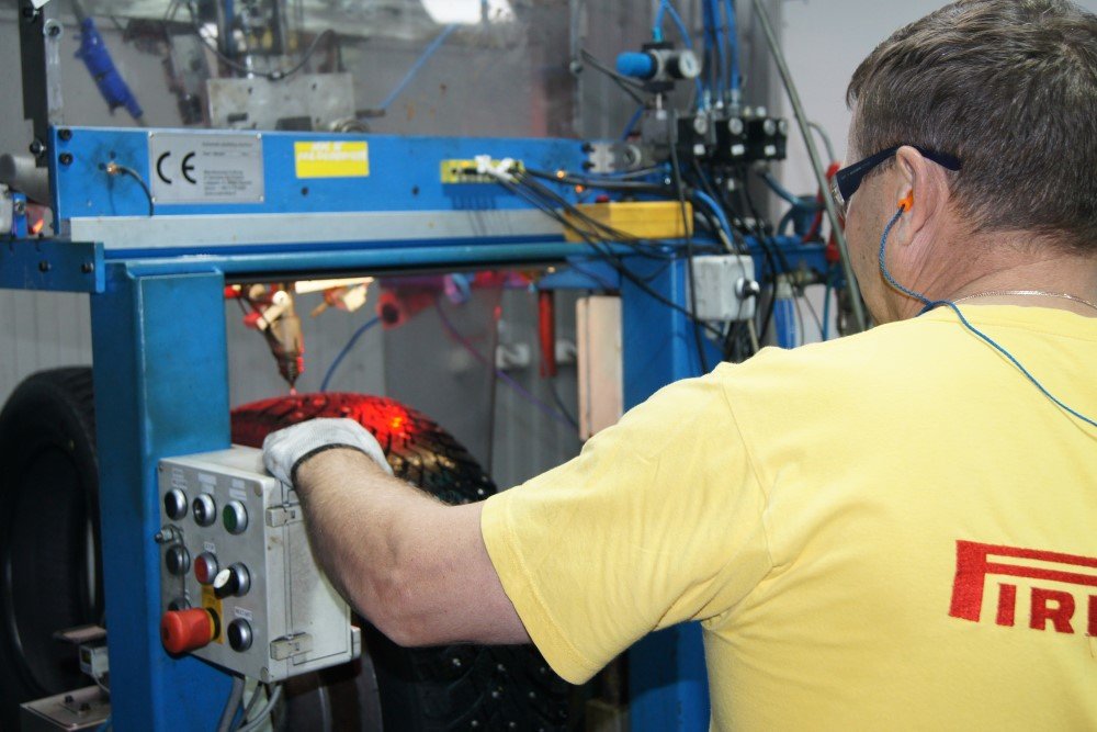Шиповальные установки, которых у Pirelli больше нет ни на каком другом заводе, - не полностью роботизированные, а полуавтоматические. Ход пневмопистолета, вставляющего шипы в шину, откалиброван электроникой. Если по какой-то причине случаются пропуски, оператор занимается дошиповкой вручную. В любом случае все две сотни шипов встают на свои места.