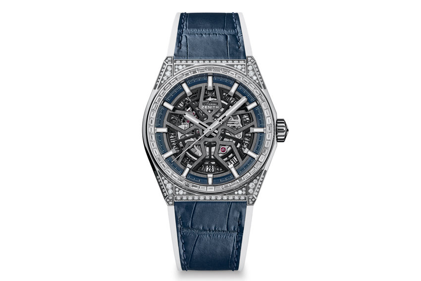Именно поэтому Zenith представил ювелирную модель одной из своих самых символичных коллекций - DEFY Classic: это DEFY Classic High Jewelry в титановом корпусе, украшенном круглыми бриллиантами, с багетными бриллиантами по безелю (всего 4,55 кт).