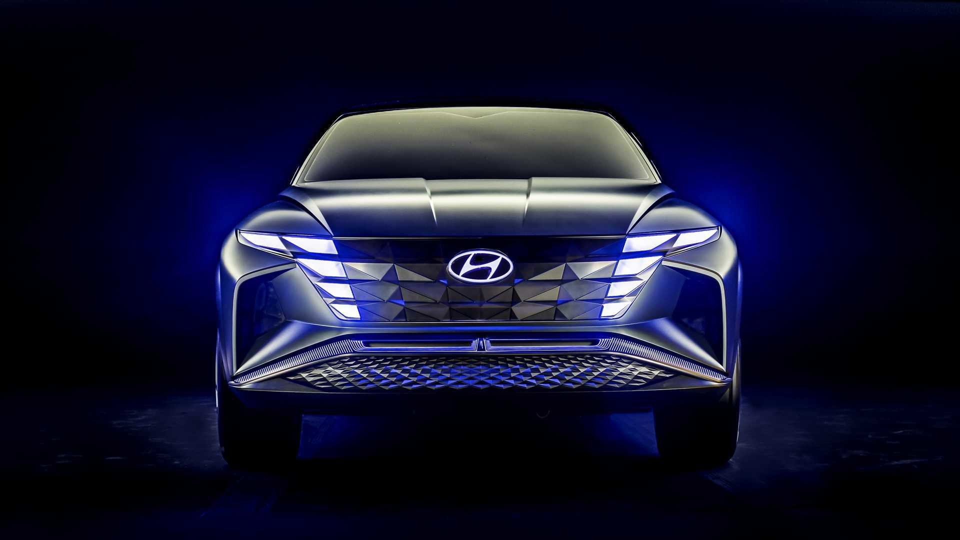 Да, все как у концептуального кроссовера Hyundai Vision T. Его рельефные бока из граней и треугольников Tucson тоже получит, но выпирать они будут намного сдержаннее. Головная оптика, конечно, останется без матовой пленки, но форма и то, как она вписана в фальшрадиаторную решетку, сохранится.