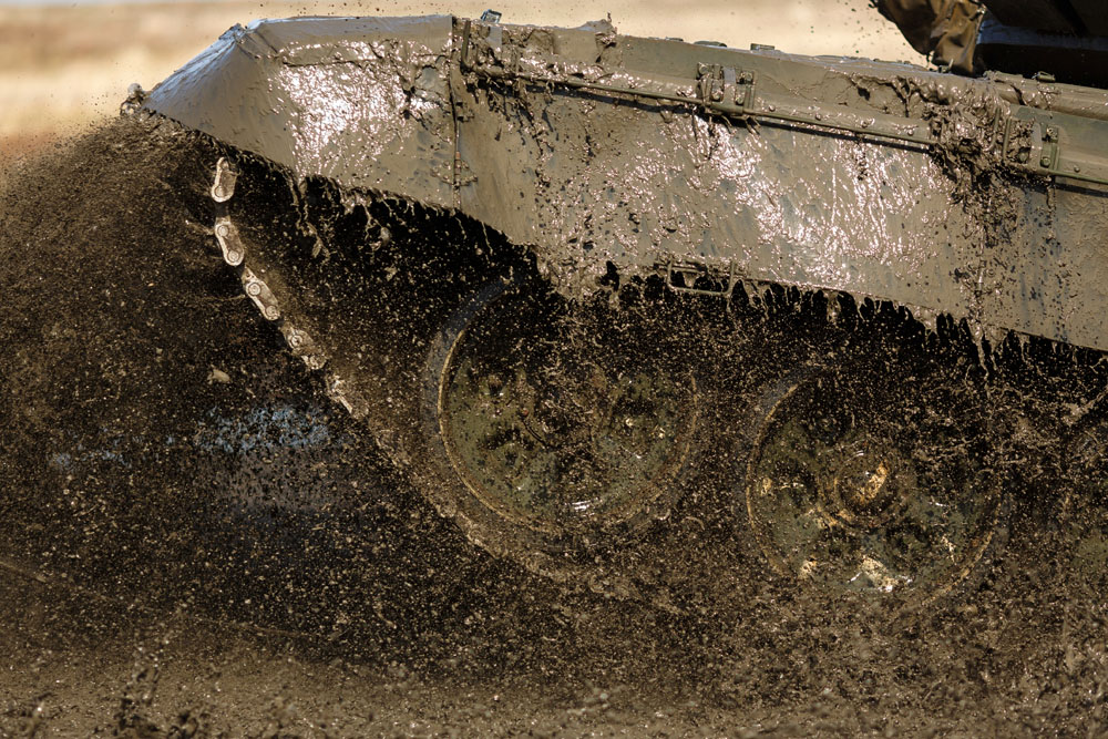 Делаются предположения, что перед нами не реальная самоходка, предназначенная для уничтожения бронетехники, а изготовленный для съемок художественного фильма ходовой макет.