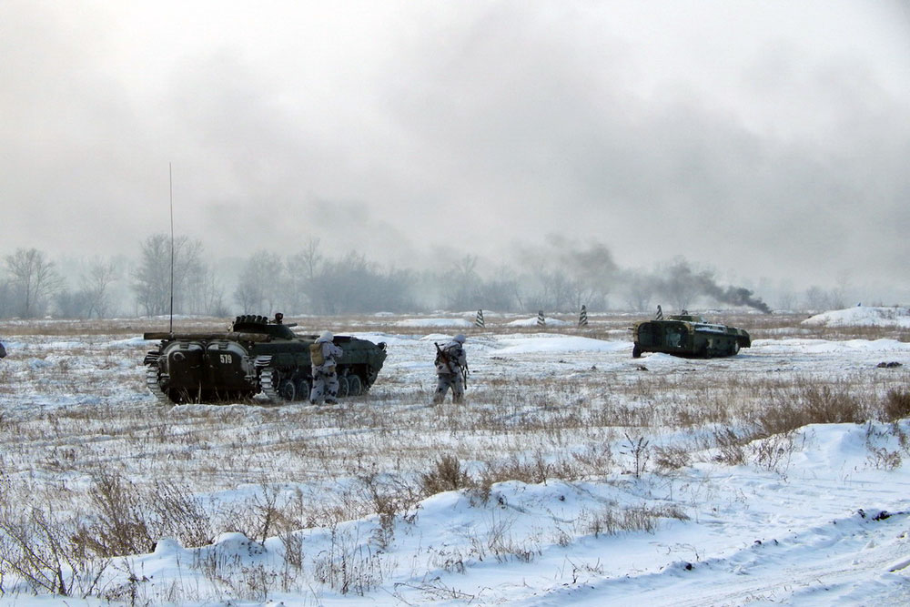 В учениях приняли участие около пяти сотен военнослужащих, было задействовано более ста единиц техники (в том числе - Т-72).