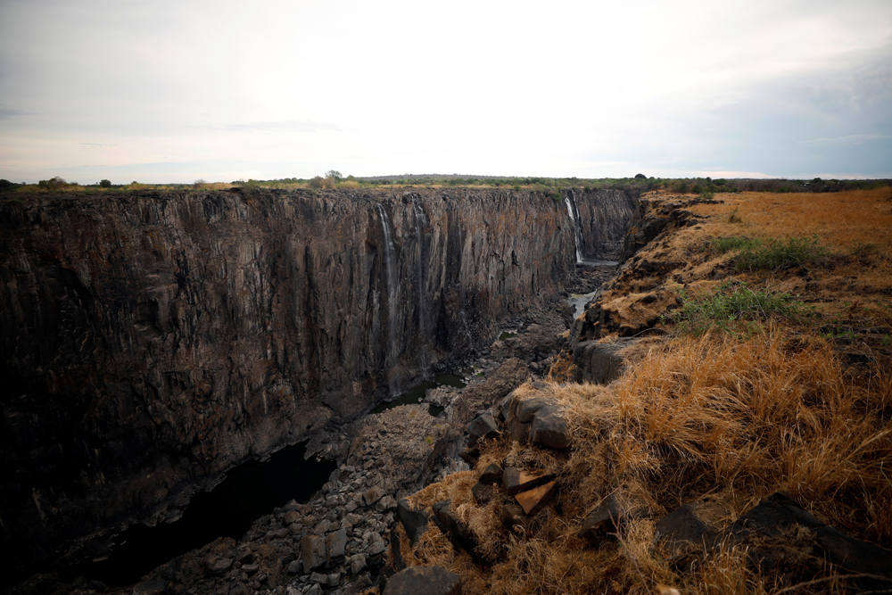 Водопад Виктория, который находится на границе между Зимбабве и Замбией (Африка), обмелел до рекордного уровня. Четвертый в мире по ширине и один из крупнейших по расходу воды, водопад почти иссяк и превратился в струйку.