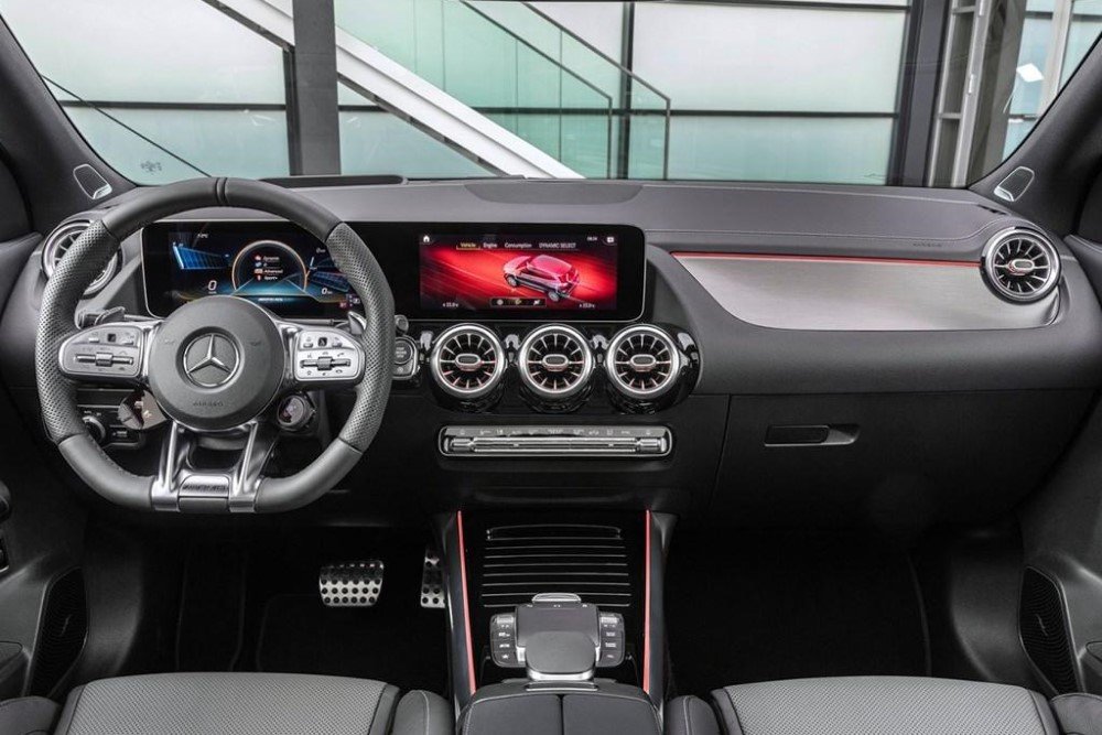 Вообще в интерьере GLA полностью повторяет Mercedes-Benz GLB, только без третьего ряда сидений. Перед водителем простираются два широкоформатных ЖК-дисплея под общим вытянутым по горизонтали экраном. Дисплеи могут иметь диагональ 7 или 10,25 дюйма. Один отображает контрольные данные о динамике, другой - информацию бортового сервиса. За сервис также отвечает электронный ассистент MBUX, понимающий речь, а в дорогих комплектациях оперирующий проекцией информации на лобовое стекло и дополненной реальностью.