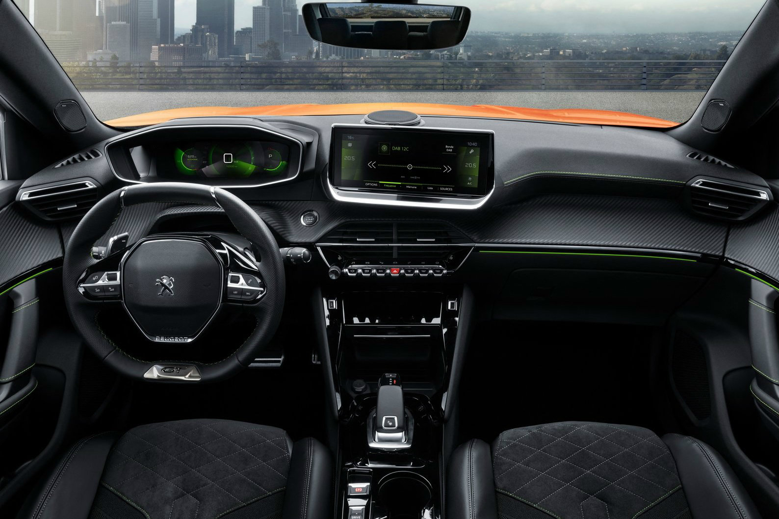 Модель отличается фирменным интерьером Peugeot i-Cockpit 3D с голографическим дисплеем (управляется при помощи сенсорных клавиш), характерным компактным рулевым колесом и декоративными вставками в салоне под углепластик.