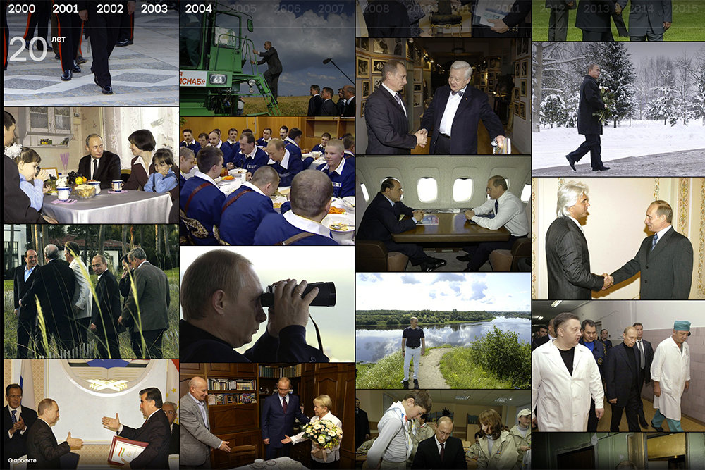Моменты двух десятилетий и опубликованы на сайте. "Этот проект - не энциклопедия, не летопись и уж тем более не сборник отчетов о проделанной работе. Это мультимедийный альбом, в котором собраны яркие моменты и интересные вехи, связанные с работой Владимира Путина на постах главы государства и председателя правительства России за 20 лет", - пишут авторы.