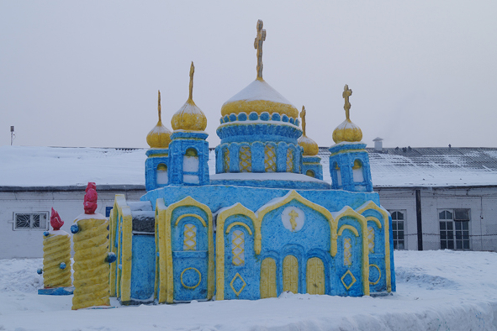 Заключенные исправительной колонии строгого режима № 44, что в кузбасском городе Белово, возвели из снега пятиметровую копию столичного храма Христа Спасителя.
