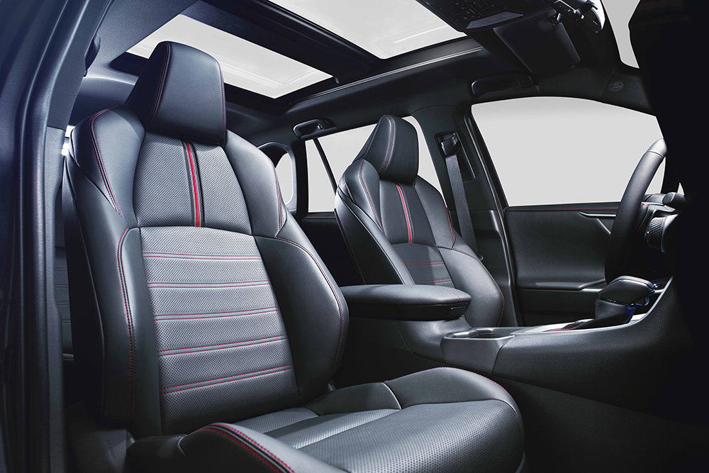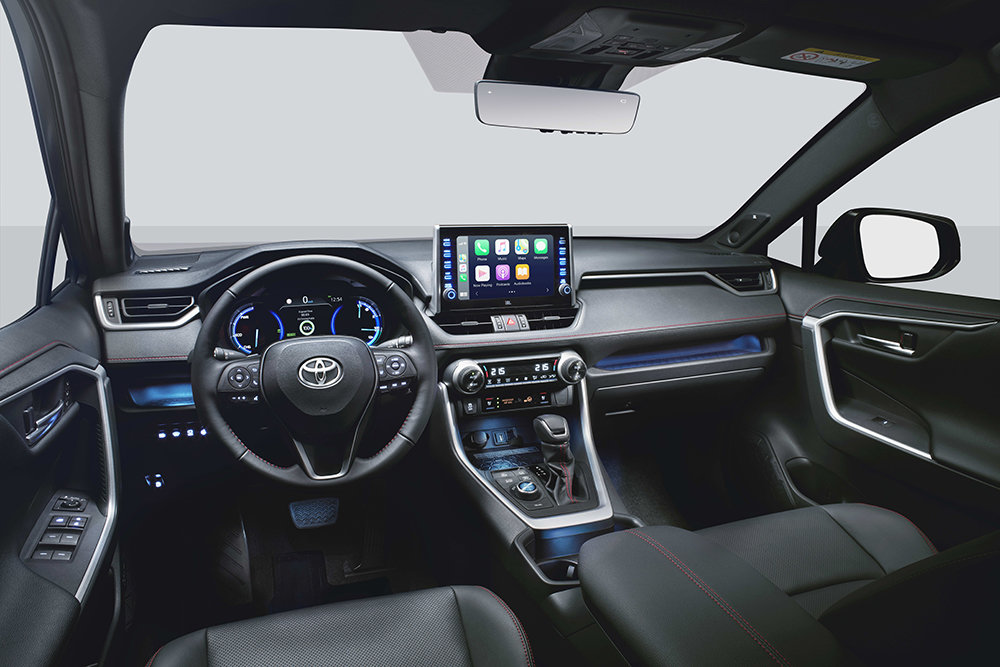 В салоне сделан акцент на новые материалы отделки. Можно заметить также, что у передних кресел чуть более развитые валики боковой поддержки. Для плагин-гибридного RAV4 предложена мультимедиа с 9-дюймовым дисплеем - самым большим из доступных для модели.