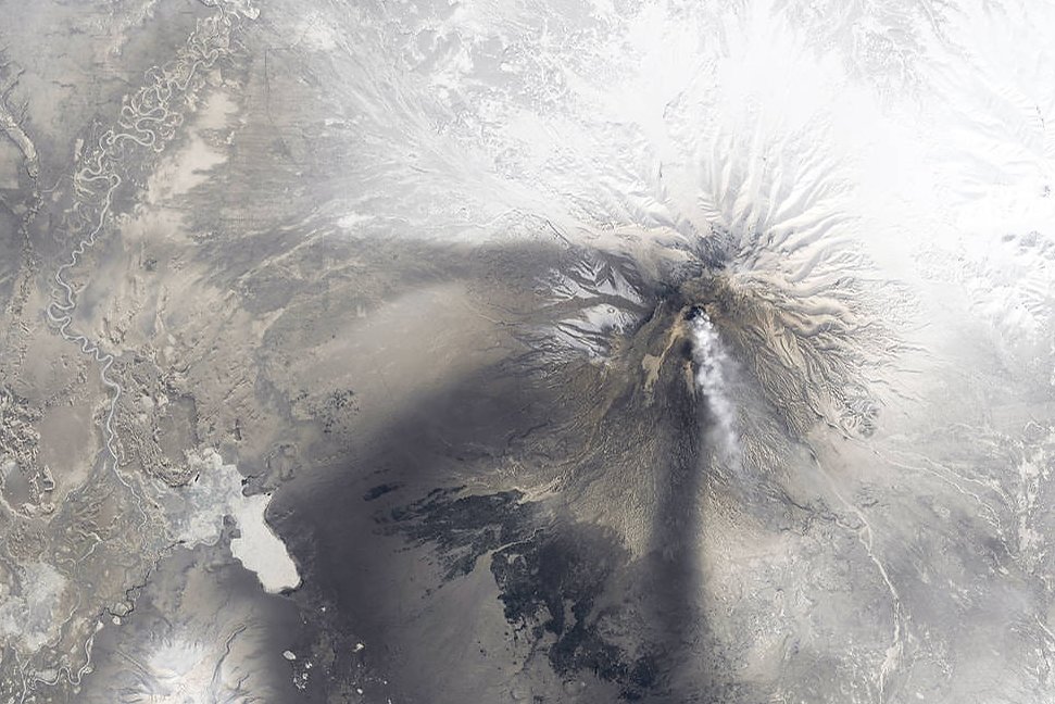 Тихоокеанское огненное кольцо - одна из самых геологически активных зон Земли. На полуострове Камчатка насчитывается более 300 вулканов, в том числе 29 действующих. Примерно на 30 минут 10 апреля 2019 года вечно беспокойный вулкан Шивелуч поднял поток вулканического газа и пепла на 8 километров в холодный сибирский воздух. Поскольку Камчатские вулканы труднодоступны, спутники необходимы для их мониторинга.