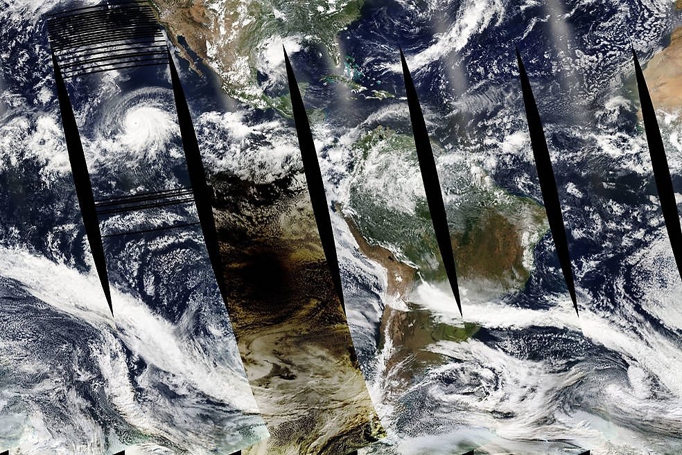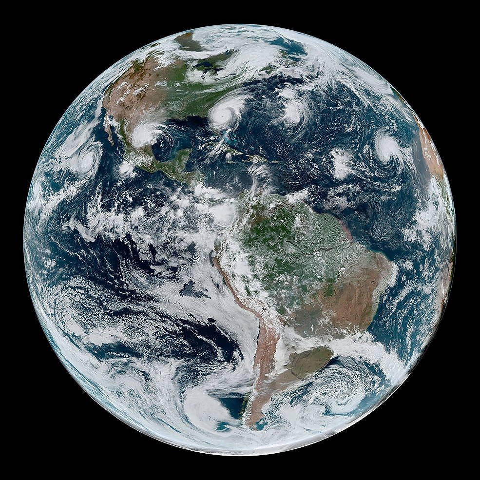 Когда был сделан этот снимок, 4 сентября 2019 года, мир наблюдал за чередой тропических циклонов, которая раскинулась по всему Западному полушарию. Циклоны получили имена - Джульетта, Фернанд, Дориан и Габриэль. Дориан достиг пятой категории по шкале тропических циклонов. Двигаясь по Багамским островам, он оставил после себя ущерб в несколько миллионов долларов. Джульетта превратилась в тропических шторм, когда отдалилась от побережья Мексики. На фотографии ураганы Джульетта в восточной части Тихого океана и Дориан в Атлантике были штормами второй категории. Между тем тропический шторм Фернанд обрушился на северо-восток Мексики и повлек за собой сильное наводнение. Габриэль превратилась в тропический шторм над восточной Атлантикой, скорость ветра достигала 80 километров в час. Снимки Земли со спутников имеют ключевое значение для ученых, отслеживающих тропические циклоны, поскольку они помогают понять направление движения циклонов.
