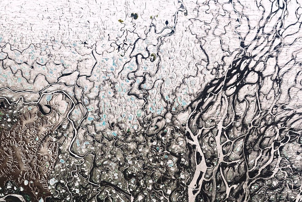 На этом изображении, полученном 4 июня 2019 года спутником Landsat-8, вы можете увидеть, как активная часть дельты встречается со старыми, более сухими частями. Подобные спутниковые снимки помогают ученым отслеживать влияние времен года на водные ресурсы, особенное значение это имеет в современных условиях быстро меняющегося климата планеты.