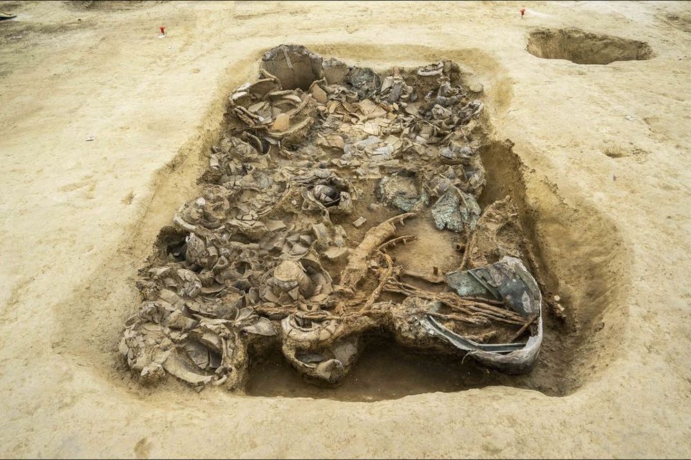 В усыпальнице ученые нашли множество различного оружия и предметов из железа и бронзы. В частности, был найден бронзовый воинский шлем, бронзовое ведро, известное как ситула, и остатки колесницы.
