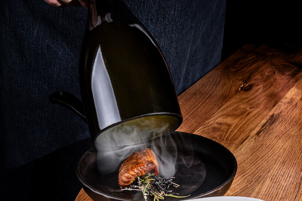 Еще одним отличительным признаком традиционной русской кухни являются натуральные соления и квашеные продукты (то, что уже несколько лет невероятно популярно в Европе под названием "ферментация"). На закуску в дегустационном сете подают ферментированные овощи, фрукты и ягоды (облепиха и морошка), которые дополняют капустным и свекольным рассолом. По-настоящему выдержанная квашенная капуста сопровождает и основное блюдо - свиную вырезку в брусничной глазури. Мясо запекают на березовых дровах и подают, что называется, "с дымком". Курс также сопровождается колбасой из гречки и горчичным соусом. Это блюдо было описано дворянином из Тульской губернии Василием Левшиным более 200 лет назад в его поварской книге, ставшей первой в истории нашей страны.