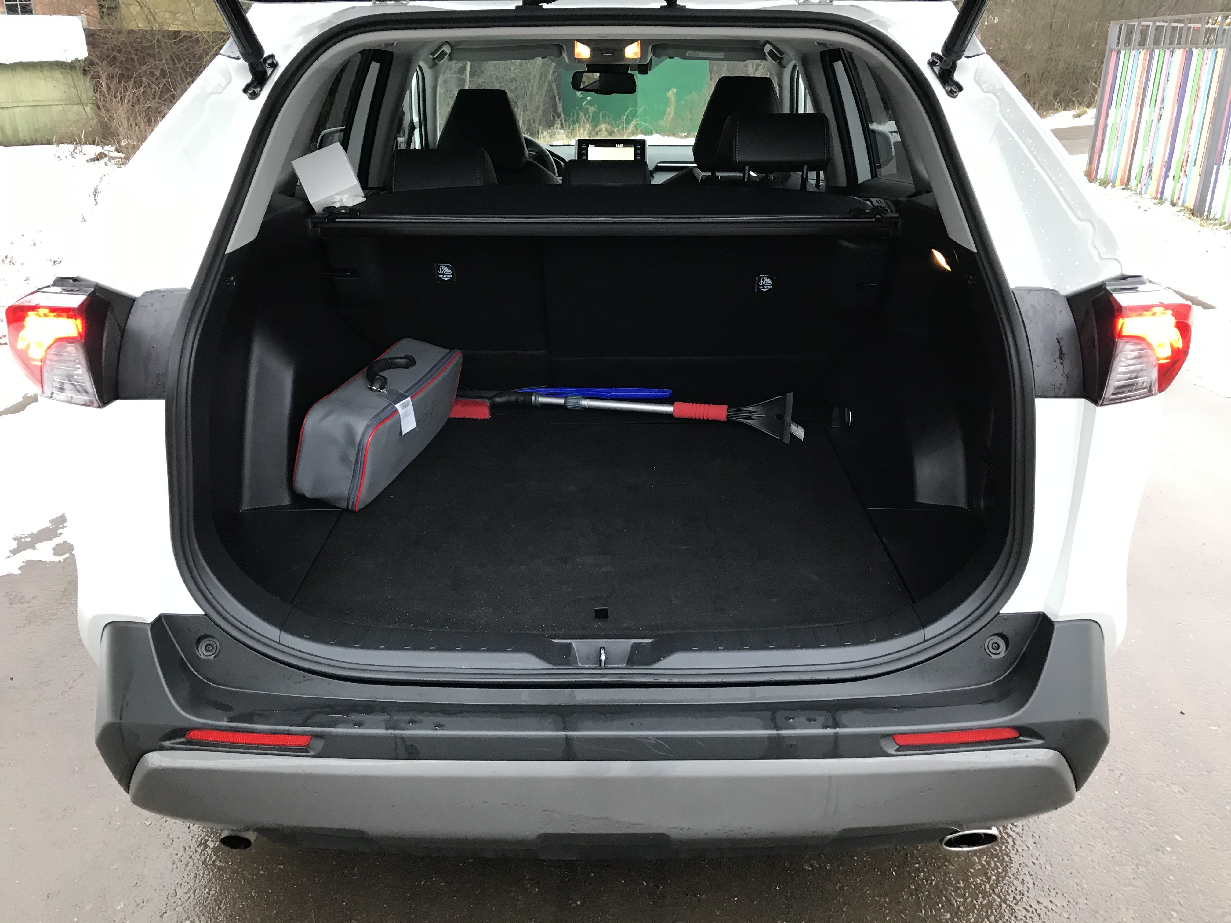 У прошлого поколения RAV4 багажник был одним из самых вместительных в классе, а теперь он стал еще больше - объем грузового отсека увеличился с 577 до 580 литров. Есть возможность убрать в специальный отсек шторку - удобно. Под полом находится "докатка" и домкрат. Но, к сожалению, вообще нет приспособлений для фиксации груза: ни крючков, ни сеточек.