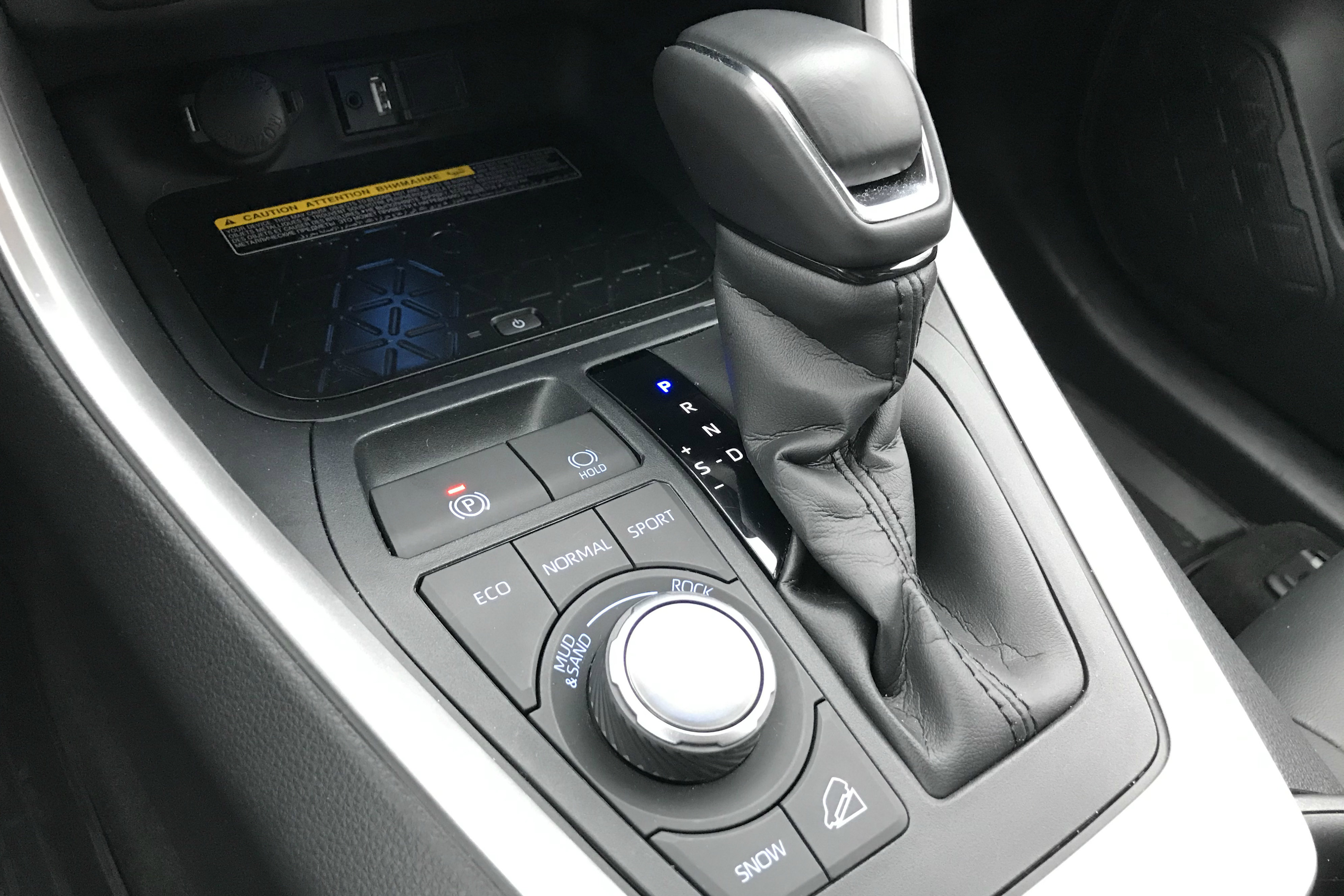 Органы управления режимами движения находятся вокруг селектора переключения передач, что, конечно, очень удобно. У площадки беспроводной зарядки прорезиненная поверхность - ваш телефон не будет ерзать при слишком активной езде.