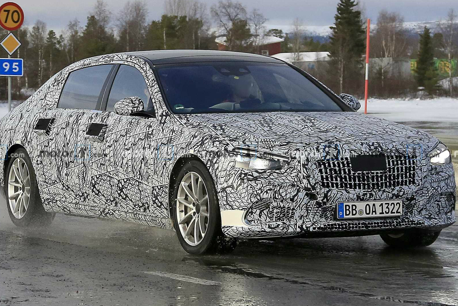 Выштамповка по низу боковин, придающая "собранность" распластанному в длину кузову, сохранится. А верхнего "всполоха" не будет - в этом поколении у Daimler в чести гладкие поверхности. Бампера станут менее выдвинутыми, отчего на силуэте передняя и задняя оконечности выглядят ориентированными почти вертикально. Новые фары - с намного меньшей площадью рассеивателя. Дверные ручки, как и на Mercedes-Benz S-Class W223, - на сервоприводе.