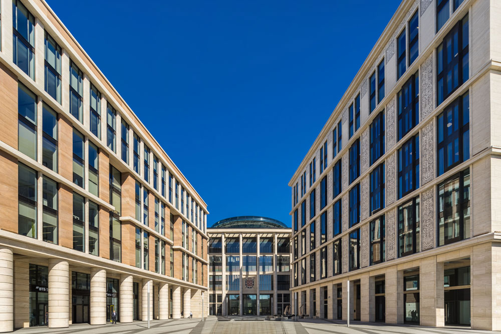 Первый и второй этапы нового строительства общей площадью 146 099,5 кв. м включают в себя шесть офисных зданий класса "А" переменной этажности от 9 до 11 этажей, а также двухэтажную подземную парковку на 1338 машиномест, работы по строительству которой ведутся в данный момент.