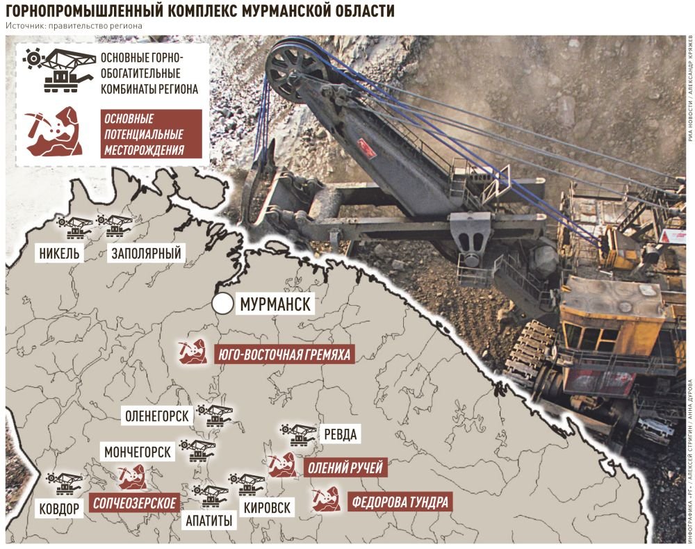 Этот вопрос крайне актуален для Мурманской области. Кольский регион обладает одной из богатейших сырьевых баз в России: здесь обнаружены в промышленных концентрациях 64 химических элемента таблицы Менделеева, более 30 из них извлекаются горнопромышленными предприятиями, отмечает директор Геологического института Кольского научного центра РАН Николай Козлов. В Заполярье известно более 400 проявлений и точек минерализации, из которых около 200 разведаны более или менее детально. Более 100 месторождений твердых полезных ископаемых имеют в современных условиях высокий инвестиционный и промышленный потенциал. Однако высокорентабельная приповерхностная часть большинства крупных и уникальных разрабатываемых месторождений Заполярья, которые интенсивно эксплуатировались десятки лет, практически выработана. С середины двухтысячных годов у всех без исключения горно-обогатительных комбинатов Мурманской области сокращается производство.