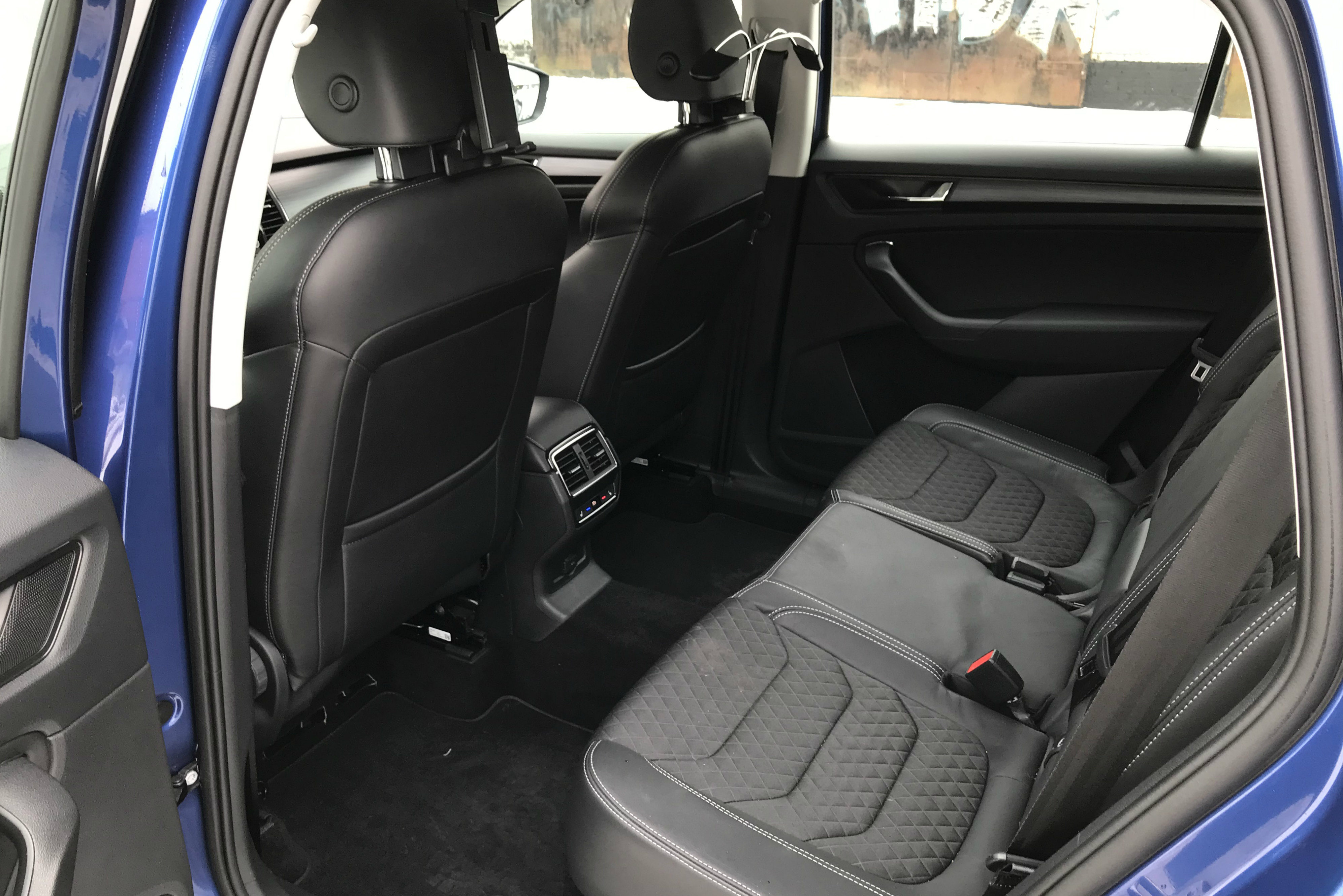 Огромный запас жизненного пространства - один из главных козырей "чеха" - лучше всего ощущается на втором ряду. Вот где можно натурально играть в футбол! Сзади есть розетка, подставка под планшет, вешалка для одежды, а также пледы - они разместились под подголовниками.