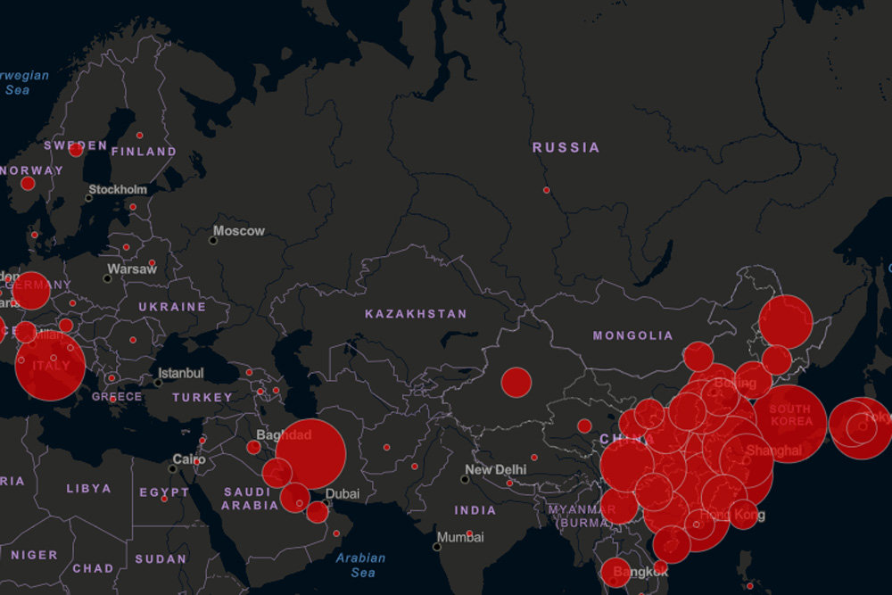 Специалисты Университета Джонса Хопкинса создали онлайн-карту распространения коронавируса. Она позволяет пользователям получать данные в режиме реального времени.