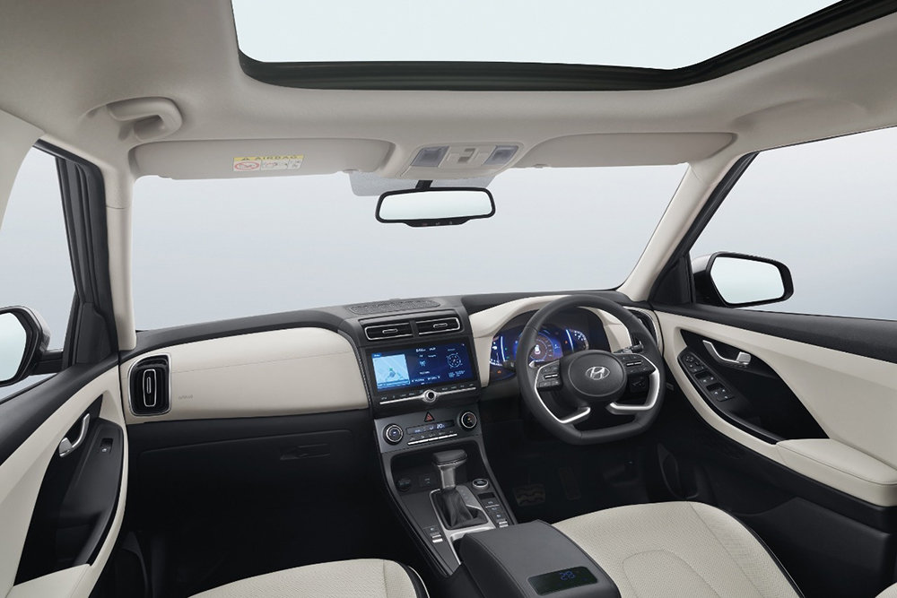 Для Creta доступны мультимедиа с сенсорным экраном 10.25 дюйма, камера заднего вида, электрический стояночный тормоз, система мониторинга давления в шинах, панорамный люк в крыше, вентилируемые сиденья с электроприводом регулировок.