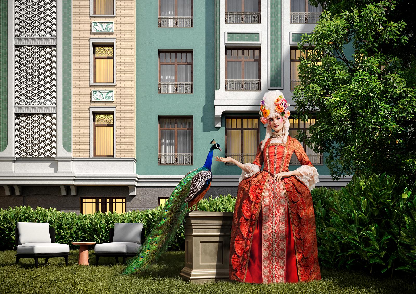 В рекламе элитного квартала "Театральный Дом" внимание уделили моде на барокко. Этот стиль особым образом подчеркнул изысканность исторической архитектуры проекта и богатство общественных зон. Барочные платья для героев сюжета были позаимствованы в костюмерных Мосфильма. Другой тренд - восточная культура - вступает в гармонию с комплексом "Сады Пекина". Здесь, на открытой крыше, состоялось фантасмагорическое мероприятие: девушки в кимоно, летающие карпы, гостья на вертолете. Этот сюжет вдохновлен самой жизнью, ведь с приходом тепла террасы по-настоящему оживают.