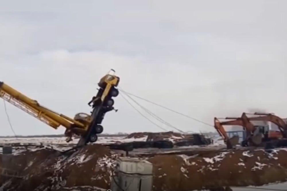 Видео: хотели поднять упавший автокран, но не учли законы физики