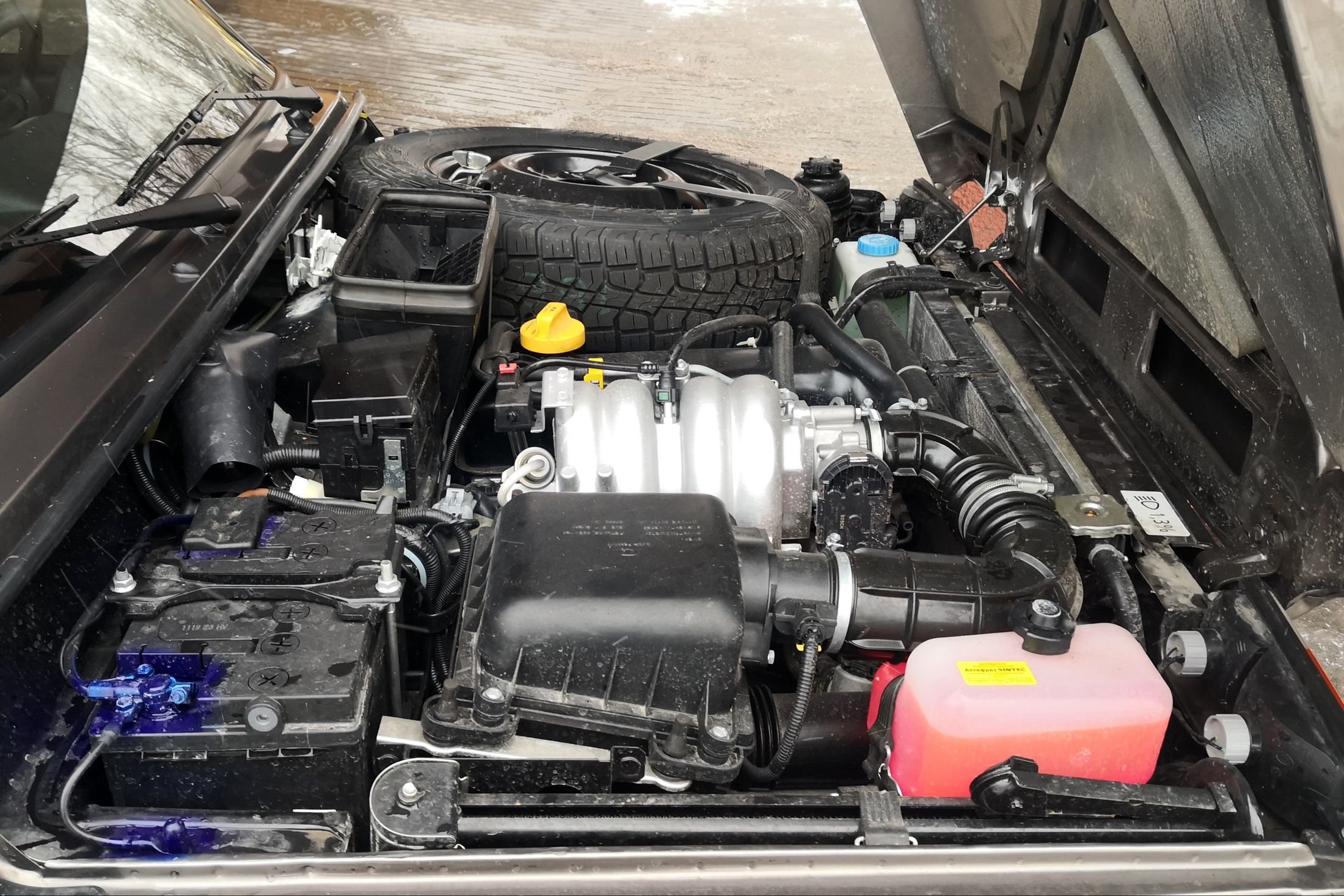 Отечественный ветеран внедорожного фронта получил лишь косметические изменения в экстерьере (новые корпуса внешних зеркал и модную антенну на крыше), но при этом радикально переработанную водительскую зону, улучшенные материалы отделки, "приборку" от семейства Granta, современный блок управления климатической установкой с электроприводами заслонок отопителя и рециркуляции и современную панель потолка с удобным плафоном освещения и улучшенные сиденья.