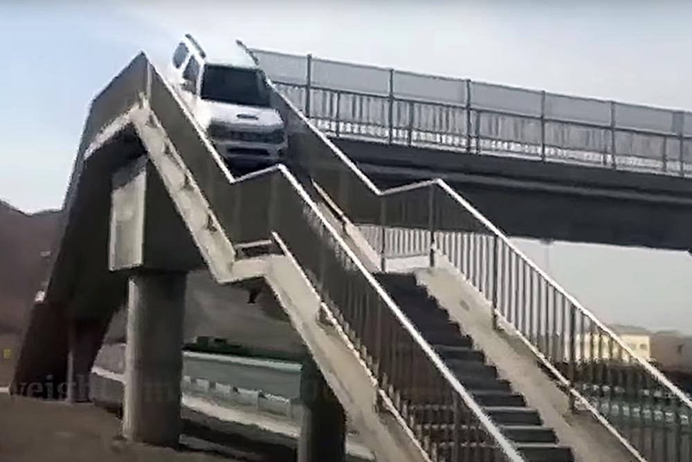 Suzuki Jimny проехал по мосту для пешеходов и был наказан