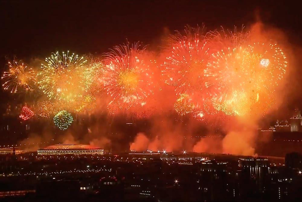 Первые залпы были даны в 22:00 по московскому времени. В связи с режимом самоизоляции из-за распространения коронавируса горожане наблюдали за салютом по трансляции на ТВ и в интернете.