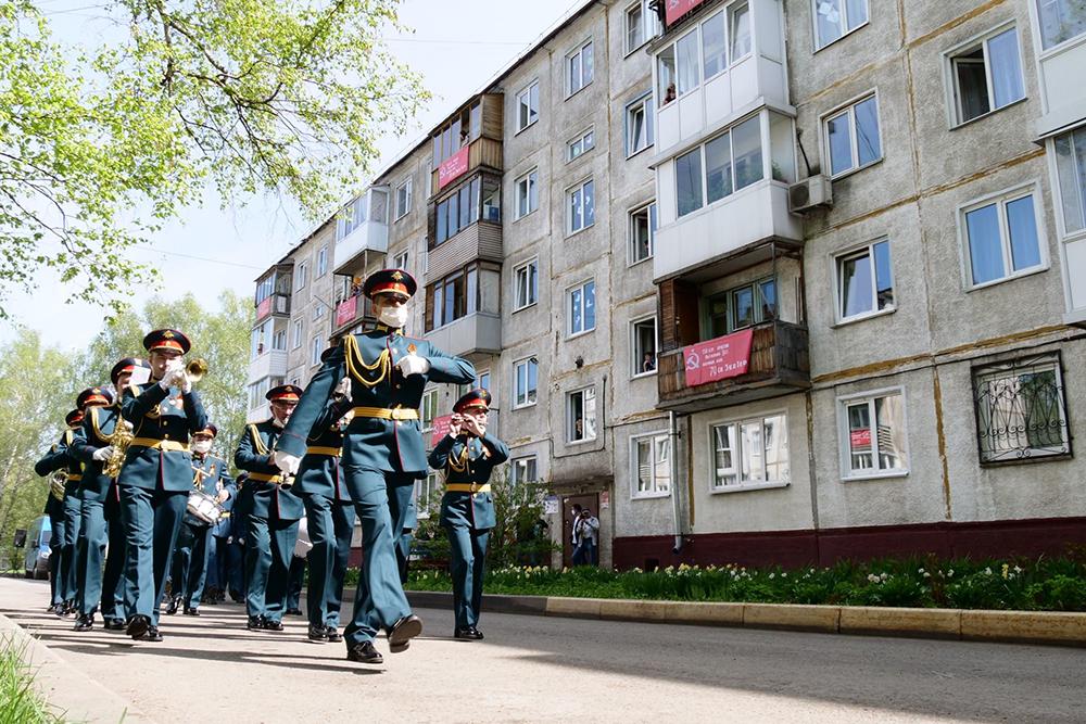 В Кузбассе состоялись 24 мини-парада во дворах участников Великой Отечественной войны. Фронтовиков и тружеников тыла поздравили с 75-летием Победы, несмотря на пандемию коронавируса.