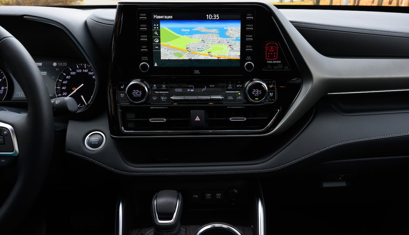 На российском рынке Toyota Highlander предложат только с полным приводом и бензиновым мотором атмосферным V6 объемом 3,5 литра, дефорсированным до 249 лошадиных сил. Коробка передач - восьмиступенчатый автомат.