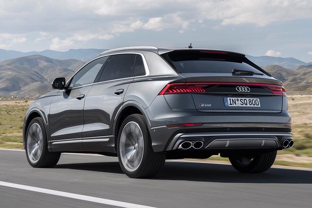 В стандартную комплектацию Audi SQ8 входят пневматическая подвеска, 2-зонный климат-контроль, камера заднего вида, аудиосистема премиум-класса Bang&Olufsen, круиз-контроль, электропривод крышки багажника.