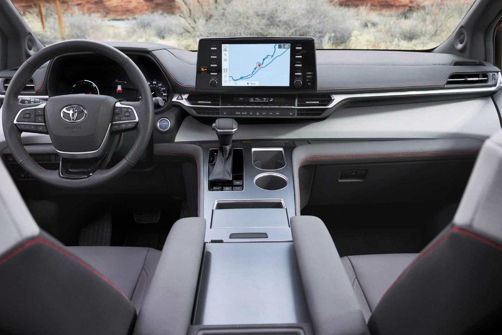 В салоне вэна - 7-дюймовый цифровой дисплей вместо традиционной комбинации приборов и 9-дюймовый экран медиасистемы с функциями Android Auto и Apple Carplay. Здесь раскидано семь USB-портов, так что с любого места будет удобно подзарядить карманный девайс. В топ-комплектации модель оснащается аудиосистемой премиум-класса с 12 динамиками, функцией проецирования показаний на лобовое стекло, а также видеокамерами кругового обзора.