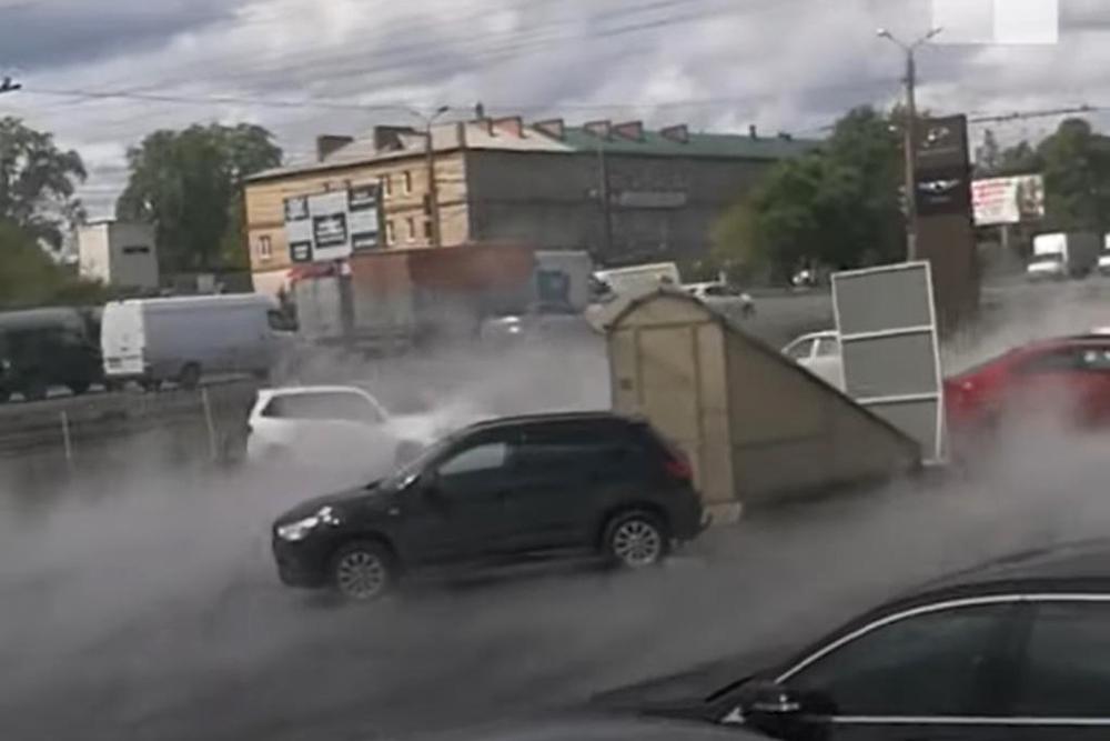 В Челябинске из-за крупной коммунальной аварии на Свердловском тракте дорогу затопило горячей водой. Под угрозой оказались десятки автомобилей, в том числе и новые иномарки на площадках у автоцентров. Причиной ЧП стали гидравлические испытания тепловых сетей, сообщили в четверг в мэрии города.