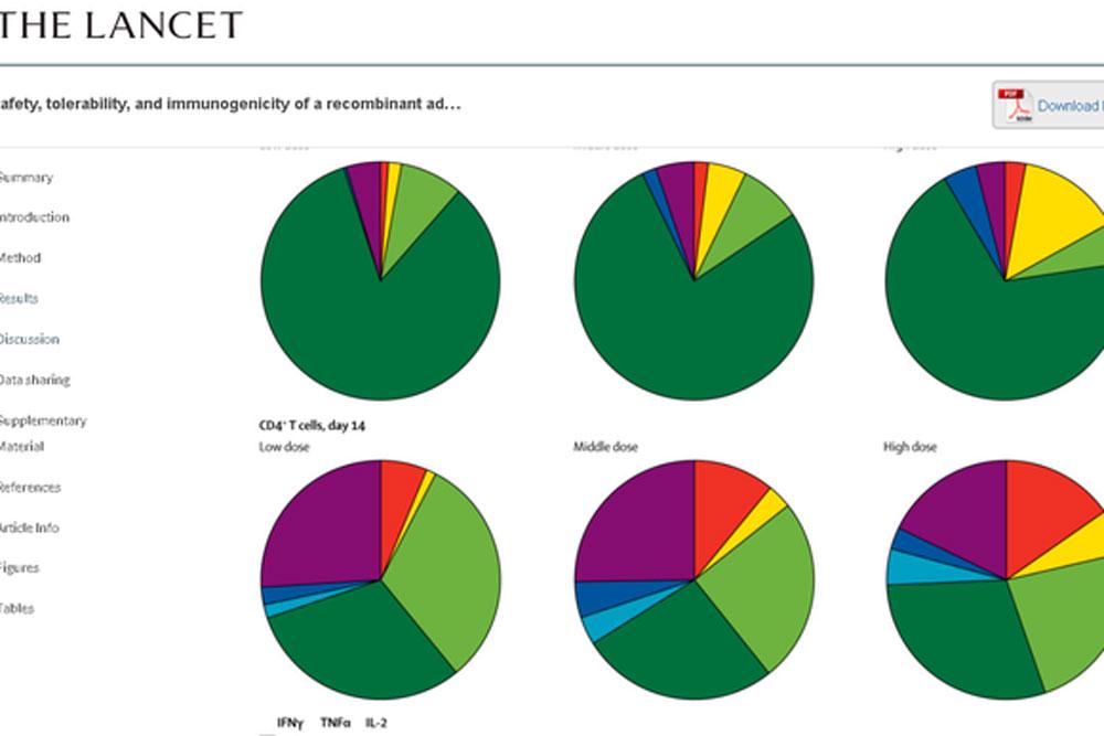 В статье содержится вывод о том, что разработанная группой китайских специалистов первая в мире рекомбинантная вакцина на основе аденовирусного вектора типа Ad5 прошла тест на безопасность и способна вызывать иммунную реакцию в организме.