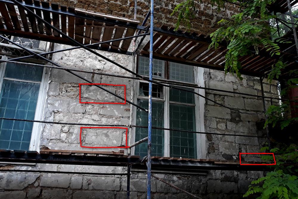 В Симферопольском техникуме железнодорожного транспорта и промышленности на улице Караимской, 29А, во время ремонта фасада здания проявились надгробные плиты. Об этом в соцсетях сообщили жители крымской столицы.