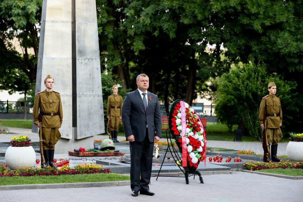 127 жителям региона присвоены звания Героев Советского Союза, 20 стали полными кавалерами ордена Славы. Именами героев Великой Отечественной войны названы более 30 улиц. В честь великого подвига земляков сегодня в четыре часа утра молодые астраханцы присоединились к международной акции "Свеча памяти". В Братском саду юнармейцы, курсанты военных училищ, поисковики выложили из лампадок число 79 - дату годовщины начала Великой Отечественной войны. У Вечного огня нёс службу почётный караул в военной форме и с макетами оружия сороковых годов.