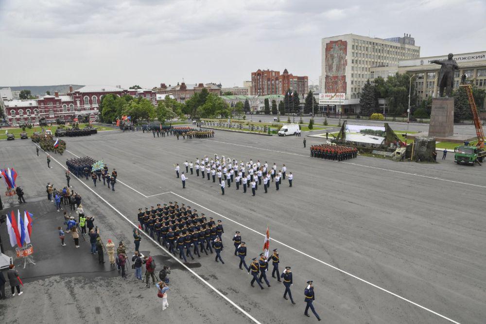 В торжественном шествии приняли участие парадные расчеты крупнейшей в Европе Таманской ракетной дивизии, Гвардейской тяжёлой бомбардировочной авиационной Донбасской дивизии, 631-го учебного центра боевой подготовки ракетных войск и артиллерии, института Нацгвардии РФ, других частей и соединений.