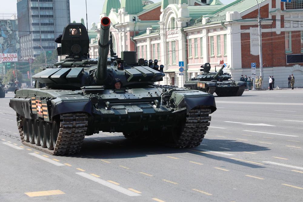 Ранее в параде принимал участие лишь восстановленный реконструкторами легендарный Т-34, который вышел на центральную площадь Новосибирск, который и нынче возглавил механизированную колонну. Но сегодня "компанию" ему составила четверка танков Т-72Б3М.