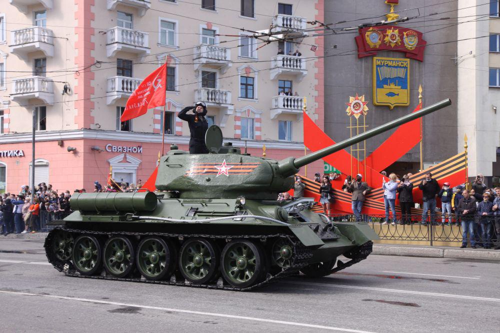 Всего в параде участвовали 72 боевые и специальные машины. В их числе были "арктические" танки Т-80БВМ, береговые ракетные комплексы "Бастион", зенитные ракетные комплексы С-400, реактивные системы залпового огня "Град", двухзвенные гусеничные вездеходы "Алеут", бронеавтомобили "Тигр", бронетранспортеры БТР-82А, армейские мотовездеходы с флагами видов вооруженных сил и родов войск и другая колесная и гусеничная техника.