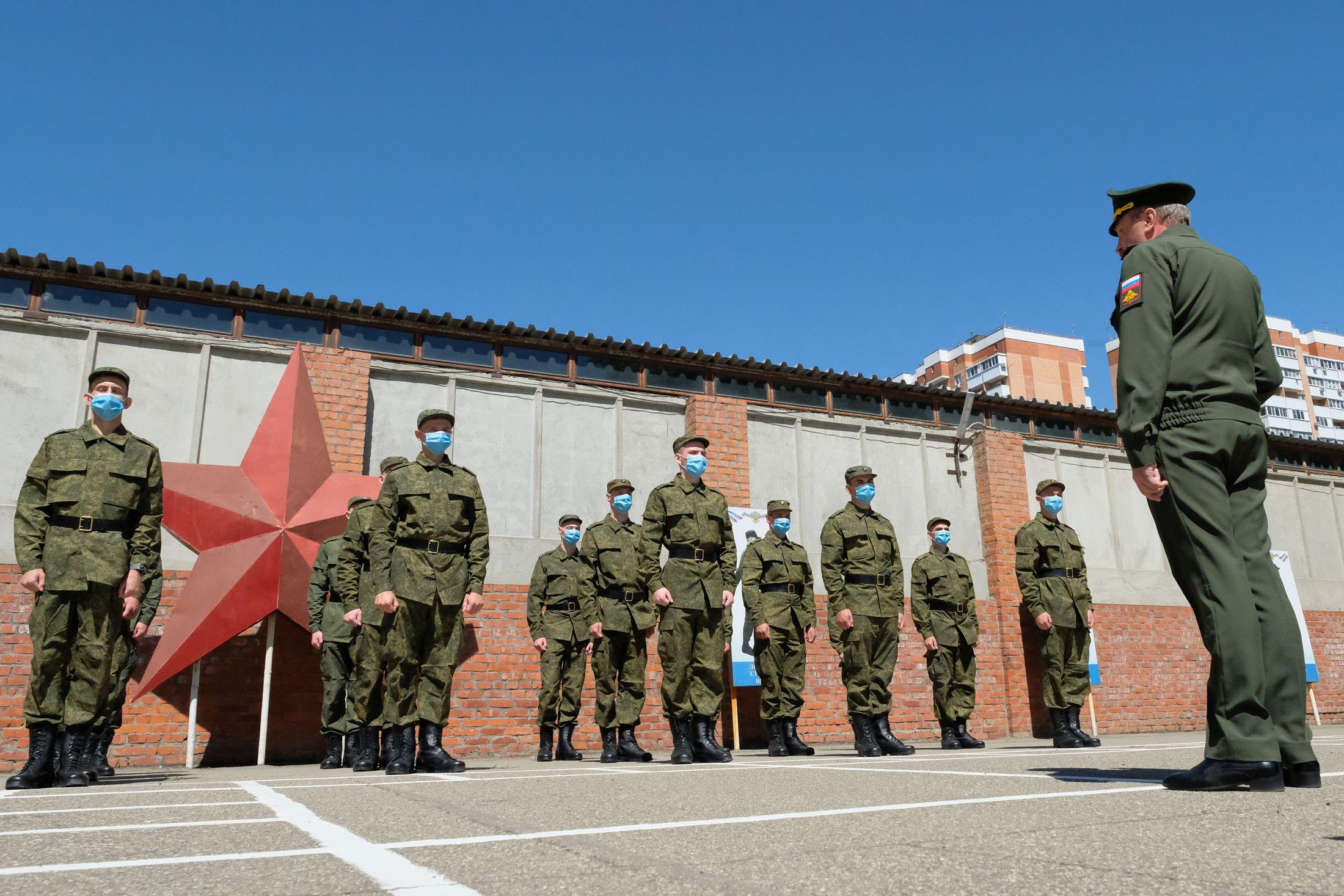 Прежде, чем переступить КПП призывного пункта, пришлось пройти процедуру медицинского осмотра и проверки документов. Обязательное условие - отсутствие повышенной температуры. Необходимо также быть в маске.