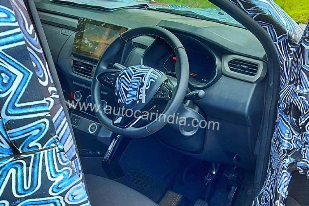 Интерьер подтвердил догадку: речь идет о бюджетном автомобиле, который, впрочем, получит довольно технологичные опции. Так, журналисты из индийской версии Autocar рассмотрели на фото цифровую приборную панель. Кроме того, обращают на себя внимание небольшой, но отдельно стоящий планшет мультимедийной системы, климат-контроль и кнопка запуска двигателя. При этом пластик передней панели выглядит откровенно дешево. Впрочем, это фамильная черта Renault - вспомним хотя бы купеобразную Arkana.