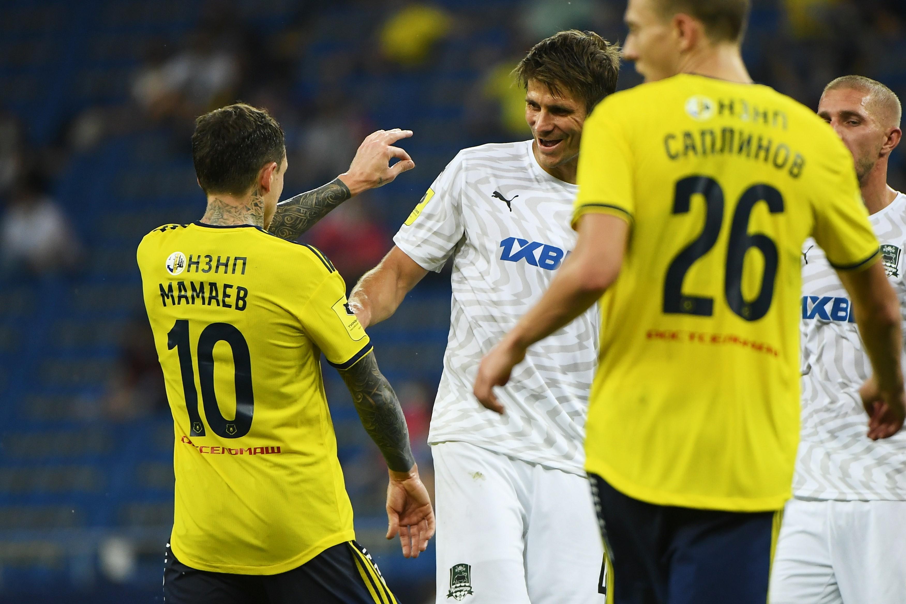 Добавим, что матч в итоге завершился боевой ничьей - 1:1. "Краснодар" идет третьим в таблице, имея в своем активе 45 очков, а ростовчане расположились на четвертой строчке, отставая от "быков" на три балла. При этом у краснодарцев, по сравнению с дончанами, есть игра в запасе.