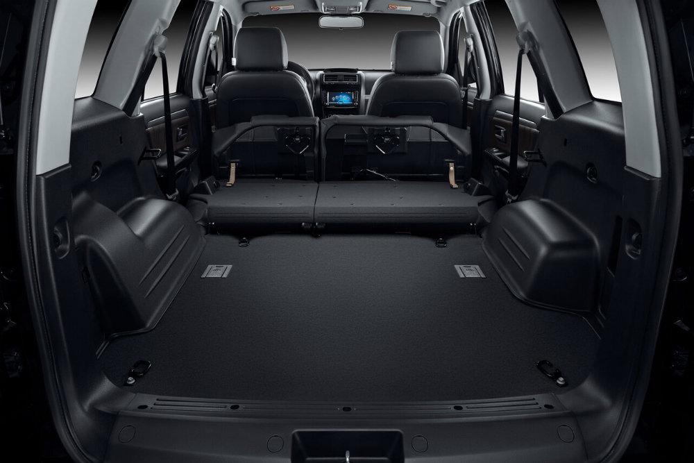 Заявленный объем багажника - 810 литров. Не обольщайтесь - это под потолок. Номинальный объем под шторкой - около 400 литров. У "Патриота" в полтора раза больше. Правда, к организации пространства вопросов нет: и сиденья складываются по частям почти вровень с полом, и дополнительные удобства в виде креплений-крючков и розетки имеются. Под сидушками заднего ряда набор инструментов. Полноценная запаска - под свесом заднего бампера.