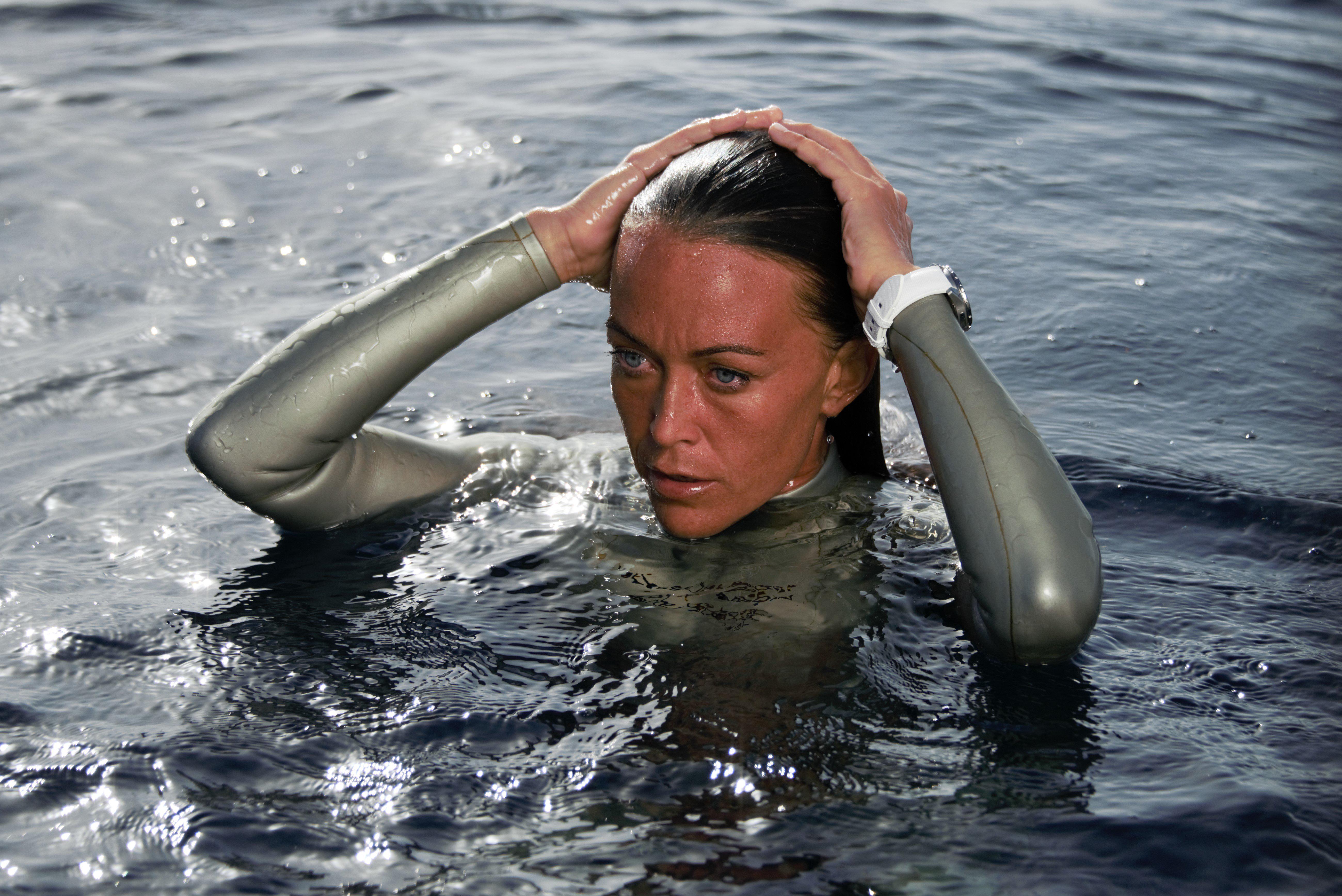 На ее запястье часы Ulysse Nardin Lady Diver Great White - в них она исследует тайны океана. Алессиа погружается в океанскую бездну с удивительной красотой и грацией. Испытывая себя на прочность, в поисках новых границ для преодоления и слушая только свое дыхание, она уходит туда, где секунда длится вечность. Достигнув цели, она возвращается к свету, воздуху и солнцу.