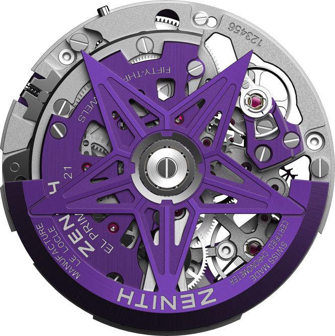 Компания Zenith первой в мире представила механизм автоматического хронографа роскошного фиолетового цвета.