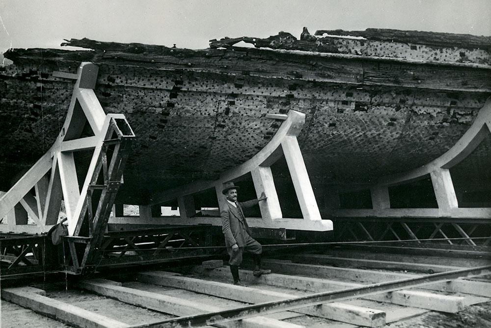 История бесследно исчезнувших кораблей полна тайн. Считается, что они были построены по указанию императора Гая Августа Германика, широко известного по прозвищу Калигула ("Сапожок"). Он взошел на римский престол в 37 году нашей эры и активно покровительствовал культу богини Дианы, который издавна процветал в окрестностях Неми. Более крупный из судов, 73 метра в длину и 24 в ширину, вероятно, вмещал храм Дианы. Второй корабль, 71 на 20 метров, Калигула использовал как плавучий дворец. Правда, во время своих увеселительных прогулок он не мог уплыть далеко из-за небольших размеров озера. Скорее всего, корабли были затоплены вскоре после убийства императора-тирана. В Средние века известно множество сообщений о том, как в сети местным рыбакам попадались бронзовые предметы, фрагменты мозаик и мраморных статуй. В середине 15 века кардинал Просперо Колонна поручил известному архитектору и теоретику искусства эпохи Возрождения Леону Баттиста Альберти исследовать озеро, но безуспешно. Тайну его дна удалось раскрыть лишь при фашистском диктаторе, который в 1927 году распорядился начать поиски подводных сокровищ. Ради этого даже восстановили подводный канал длиной более полутора километров, который был пробит еще в доримские времена через западную сторону кратера вулкана для орошения полей. И вот в 1932 году в иле действительно обнаружили остатки двух величественных деревянных судов. Правда, их вторая жизнь оказалась недолгой.