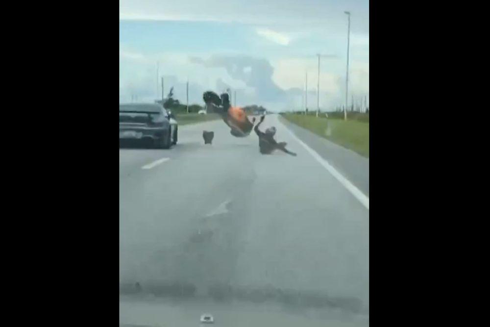 Видео: байкер вызвал Porsche на гонку, но не проехал и пяти метров
