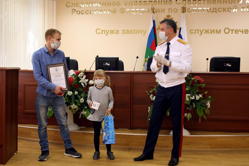 Руководитель Следственного комитета по Вологодской области генерал-майор юстиции Эдуард Шрамко наградил пятилетнюю девочку Ксюшу. Она спасла младшего брата из горящей квартиры, а потом выбралась и сама, сообщили в понедельник в пресс-службе ведомства.